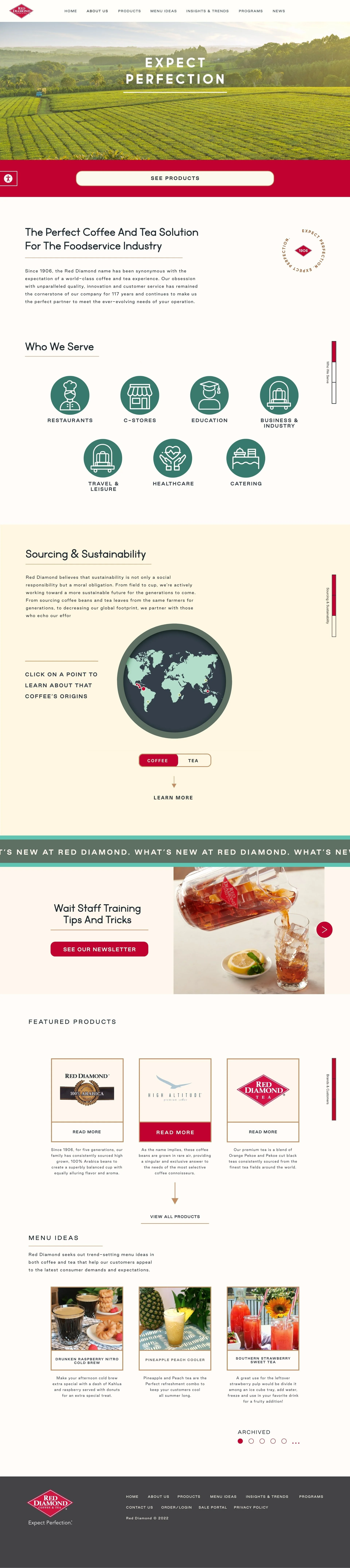 Team aside I personally loved this part of the campaign… We pulled in a more minimal look to be used to Red Diamond Foodservice’s main branding to bring it into the modern era. We kept some of the touches from the campaign in how we used created and used assets. Their foodservice sites viewership was mostly owner and operators so through experimentation we came to the realization that the website was just a “digital menu” for our client’s customers. We followed this method and developed the look and feel to be a higher class eatery, the products section is the most evident part of this design method. This look and feel developed from their website into their new branding outside of Advert campaigns.